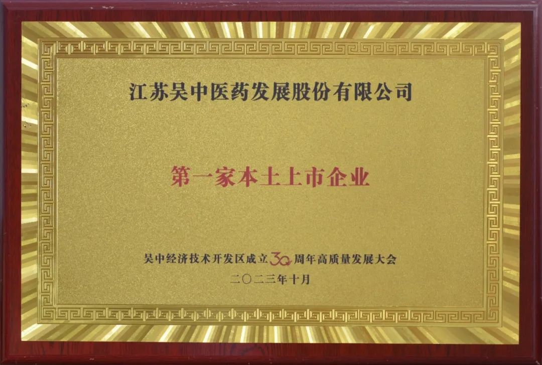 江蘇吳中醫藥發展股份有限公司獲評吳中經開區30年十大歷史性突破代表企業 日期:2023年10月19日